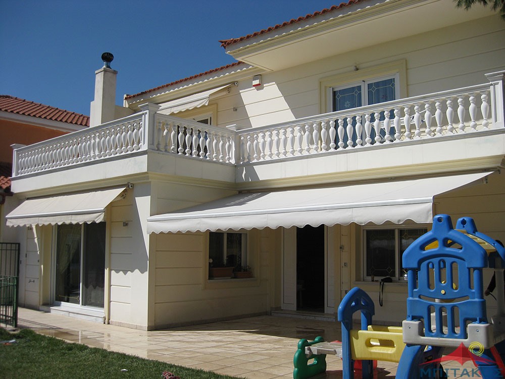 Οι τεντες με βραχίονες σταματούν σε όποιο σημείο επιθυμείτε κρατώντας το πανί παντα τεντωμένο. Δεν χρειάζονται στήριξη στη κουπαστή του μπαλκονιού και όταν μαζεύεται η τέντα δεν μένουν σωλήνες στη θέα. Οι βραχίονες είναι βαρέως ,υπέρ βαρέως αλλά και διπλοί ανάλογα με τη κατασκευή,χυτοί απο κράμα ανοδειωμένου αλουμινίου. Διαθέτουν εσωτερικά, διπλά ελατήρια γαλβανισμένα και διπλά συρματόσχοινα ή καδένα INOX. Είναι βαμμένοι με ηλεκτροστατικη βαφή σε λευκό χρώμα ή κατα παραγγελία στο χρώμα RAL που επιθυμείτε. Ομορφη αισθητική και ποιότητα για τον χώρο σας.