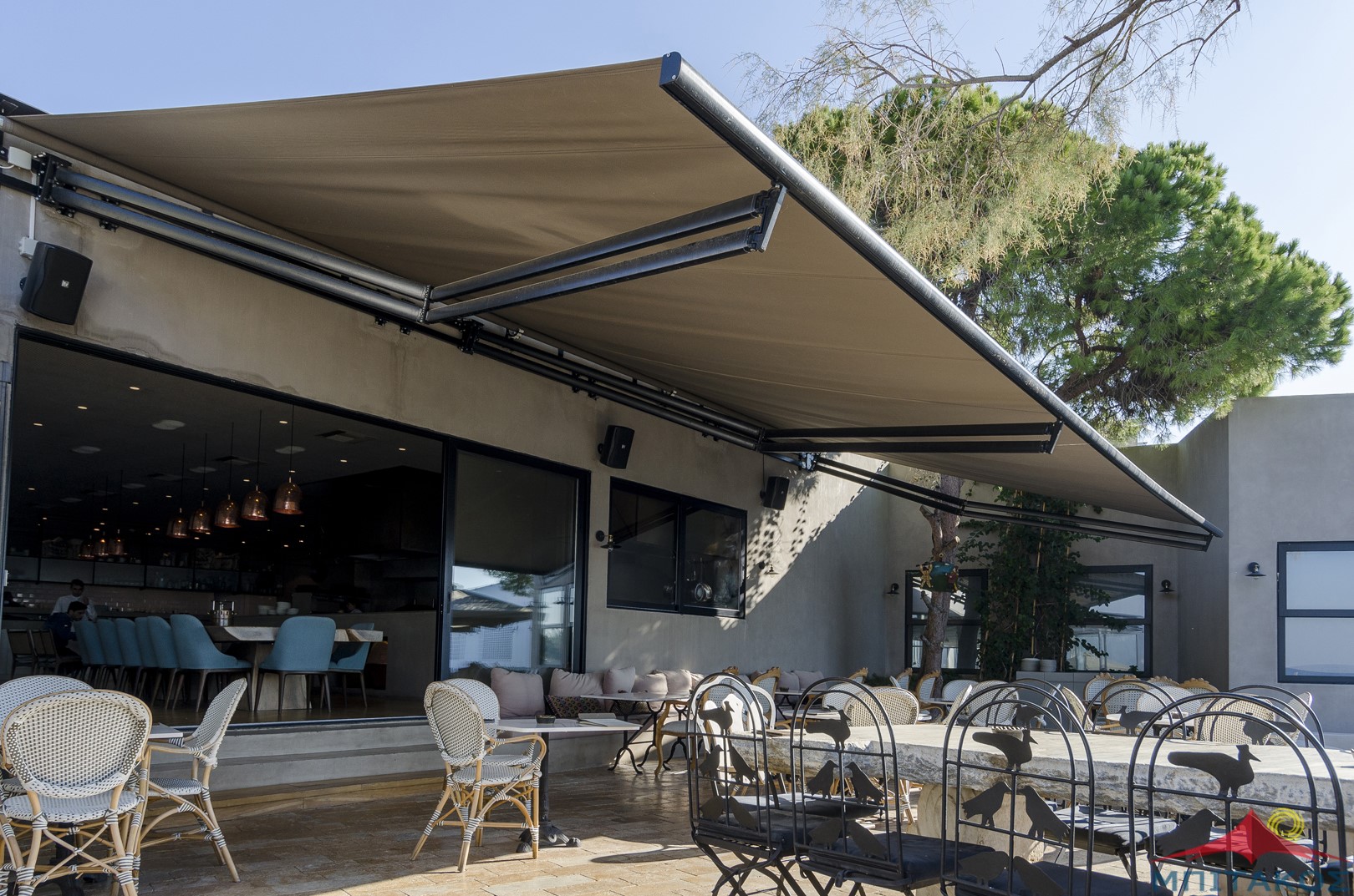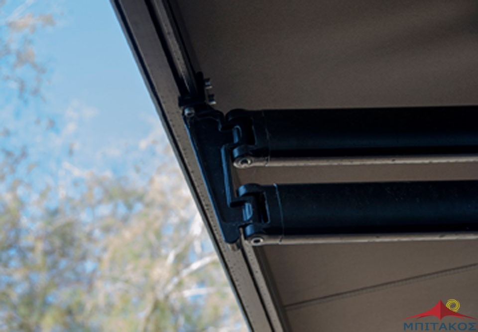Twin Hercules ArmΕιδικού τύπου διπλός βραχίονας, με αλυσίδα στην άρθρωση και προφίλ υπερβαρέως τύπου πάχους 4mm. Η μοναδική λύση της αγοράς για εφαρμογές σκίασης με προβολή έως και 6,25m.